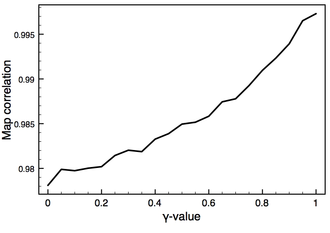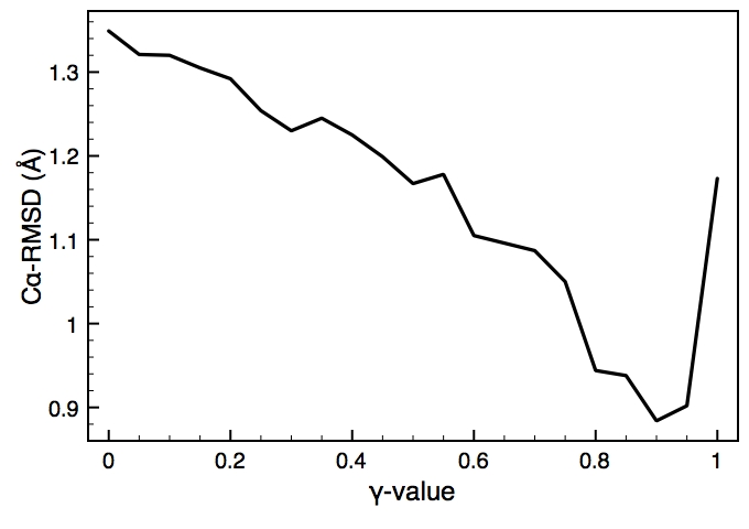 and the density map correlation. From the RMSD plot, the optimal γ-value